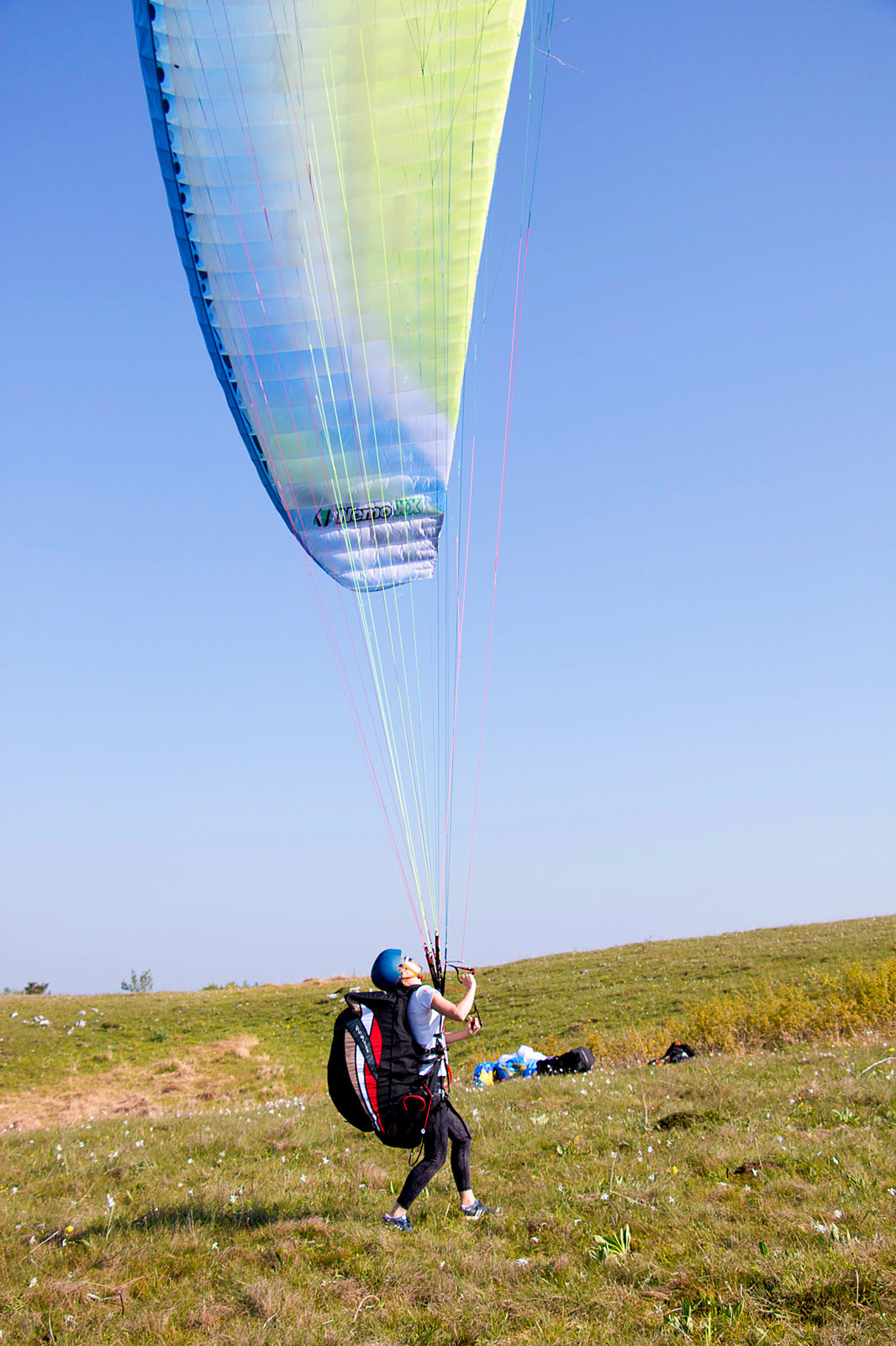 - kontroli paralotni w trakcie rozbiegu. Wyczucie, bez obserwacji wzrokowej, w którym miejscu nad głową znajduje się paralotnia, jest kluczem do prawidłowych reakcji. Te zaś są niezbędne do realizacji bezproblemowego i bezpiecznego startu